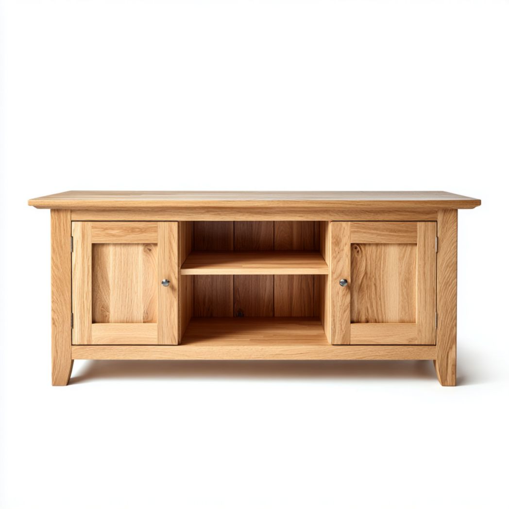 Buffet bas en chêne massif avec deux portes et niche centrale