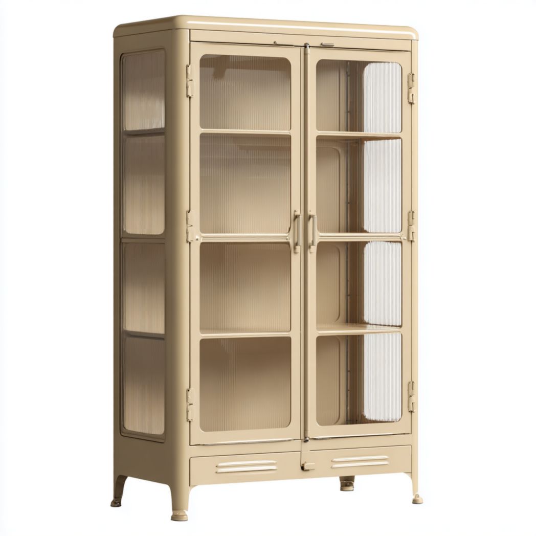 Armoire deux portes en bois de chêne naturel avec poignées métalliques noires